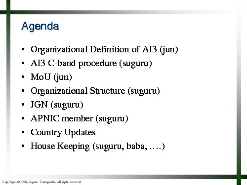Agenda, Suguru Yamaguchi: Slide 2 of 7.
