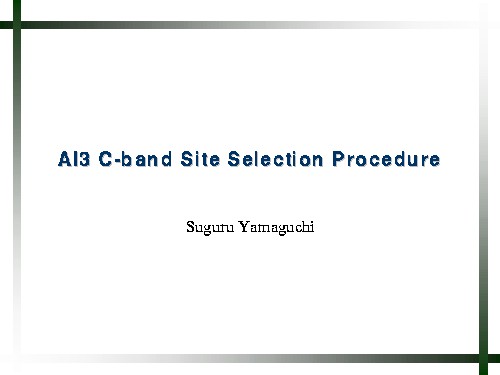 C-band site selection, Suguru Yamaguchi: Slide 1 of 8.
