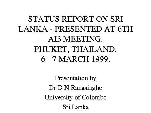 Sri Lanka, country update, DN Ranasinghe