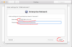 | 4. | At this stage, you must provide the account and password you will be using with eduroam.Make sure you use @cs.ait.ac.th after your user name; for example st119873@cs.ait.ac.thWithout the @cs.ait.ac.th, authentication to eduroam will fail. Use your CSIM password.If you install this profile on a system with several users, leave the username and password empty; each user will have to enter his credentials when he connects to eduroam. |