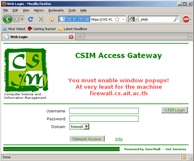 The Computer Crime Act B.E. 2550 of Thailand requires that any person access Internet is properly identified. In order to fulfill this requirement, you must authenticate to the network access gateway before you can access any Internet resource outside of AIT (inside AIT is any IP addresses 192.41.170/24 and 203.159/18, AIT web site is hosted in the cloud and therefore is outside of AIT).